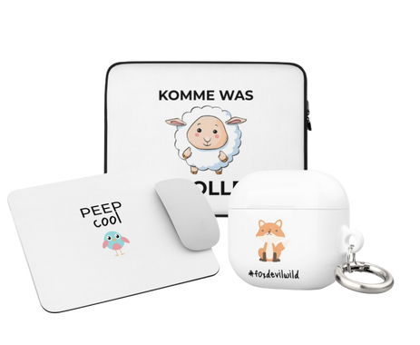 Entdecke unsere neuesten Technik-Accessoires, darunter Mauspads, Taschen und AirPods-Hüllen.